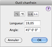 q Appuyez sur la touche Option et sélectionnez l’outil Chanfrein de la palette des WildTools. La fenêtre de dialogue suivante apparaît :