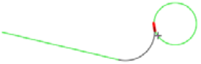 q Positionnez le pointeur sur un objet du dessin, près de l’extrémité de l’objet sur lequel vous souhaitez ajouter l’arc, puis appuyez sur le bouton de la souris. Vous pouvez cliquer sur une ligne ou un arc. Si vous cliquez sur un polygone, une B-spline ou une Bézier, l’objet doit être ouvert. |