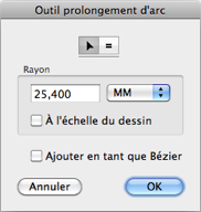 q Appuyez et maintenez la touche Option puis sélectionnez l’outil Prolongement d’arc de la palette des WildTools. La fenêtre de dialogue suivante apparaît :