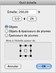 q Appuyez sur la touche Option et sélectionnez l’outil Échelle de la palette des WildTools. La fenêtre de dialogue suivante apparaît :
