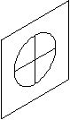 Select in-plane if you want to place or draw a shape directly on the current view plane. The diameter of an in-plane circle may be measured in two axes, as indicated by the two lines above, and by two lines in the sample window in a tool's dialog box.